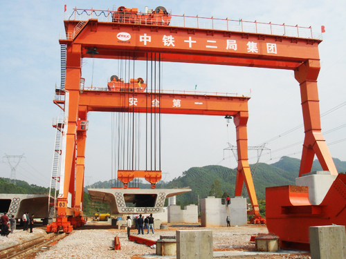 以及生產(chǎn)更新運架產(chǎn)品能架設(shè)跨度40M高速鐵路箱梁的:SXJ1000T/40M一跨式架橋機(jī)(配套攀爬式運梁車可以實現(xiàn)過隧道零距離架梁)和攀爬式運梁車。并能對現(xiàn)有32M分體式運架設(shè)備進(jìn)行改造,改造后能實現(xiàn)高低位架設(shè)跨度40M高速鐵路箱梁(高位改造不能過隧道,把原架橋機(jī)改造一跨式,把原運梁車增加2軸。低位改造能過隧道架梁,把原架橋機(jī)改造一跨式低位,把原運梁車改成攀爬式運梁車并增加二臺喂梁臺車實現(xiàn)過隧道架梁)。